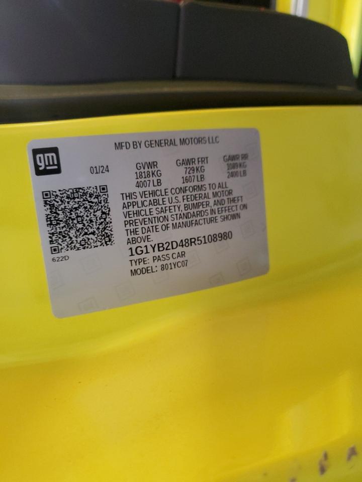 2024 CHEVROLET CORVETTE - 1G1YB2D48R5108980, колір - Жовтий, 6.2, Бензин, Задній привід із США