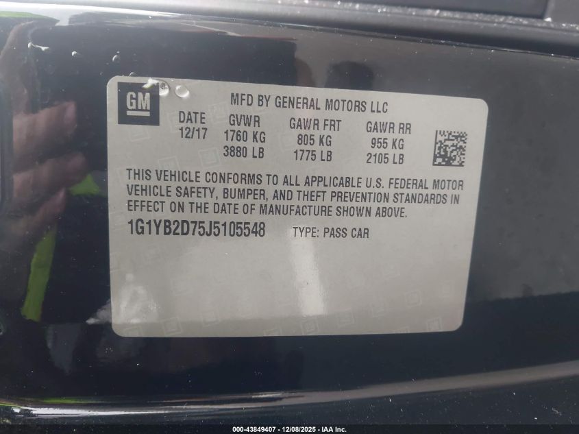 2018 CHEVROLET CORVETTE - 1G1YB2D75J5105548, колір - Чорний, 6.2, Бензин, Задній привід із США