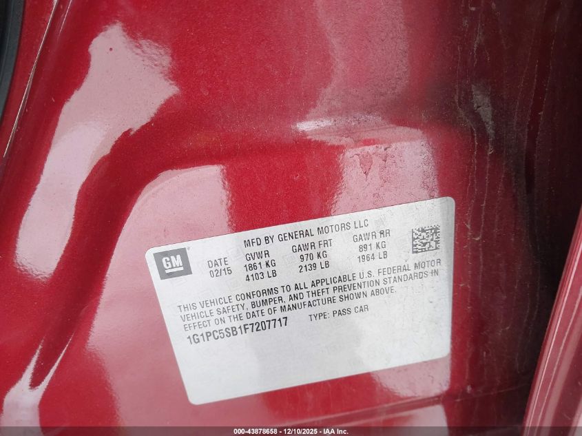 2015 CHEVROLET CRUZE - 1G1PC5SB1F7207717, колір - Червоний, 1.4, Бензин, Передній привід із США