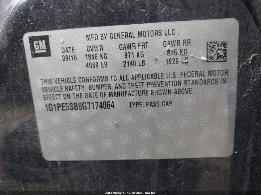 Колір СинійЦиліндри 4Привід Передній привідVIN 1G1PE5SB8G7174064Стан Заводиться та їде (перевірено)Ушкодження Звичайний зносДата аукціона 2025-12-18