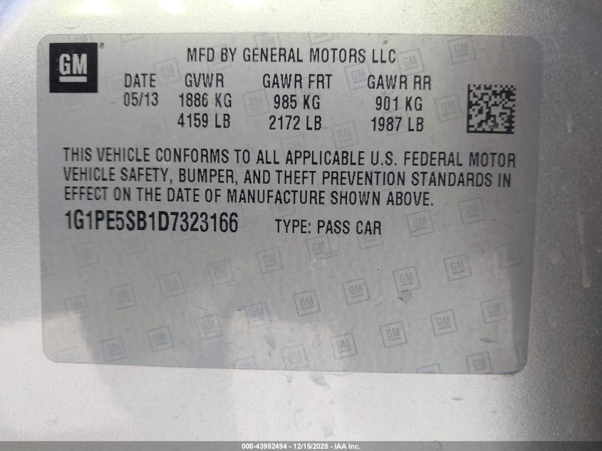 2013 CHEVROLET CRUZE - 1G1PE5SB1D7323166, колір - Срібний, 1.4, Бензин, Передній привід із США