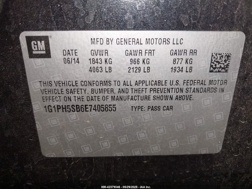 2014 CHEVROLET CRUZE - 1G1PH5SB6E7405855, колір - Чорний, 1.4, Бензин, Передній привід із США