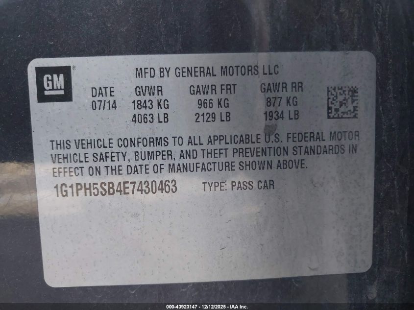2014 CHEVROLET CRUZE - 1G1PH5SB4E7430463, колір - Сірий, 1.4, Бензин, Передній привід із США