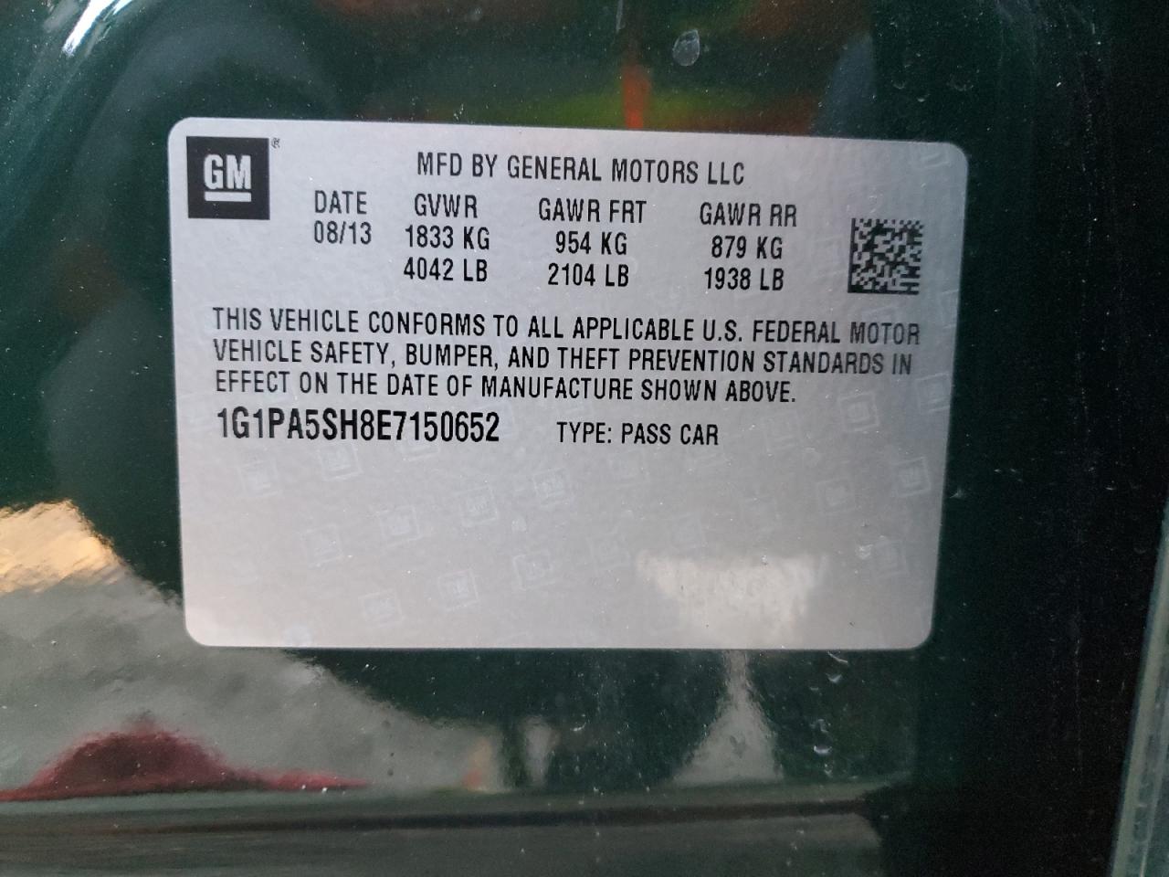 2014 CHEVROLET CRUZE - 1G1PA5SH8E7150652, колір - Зелений, 1.8, Бензин, із США