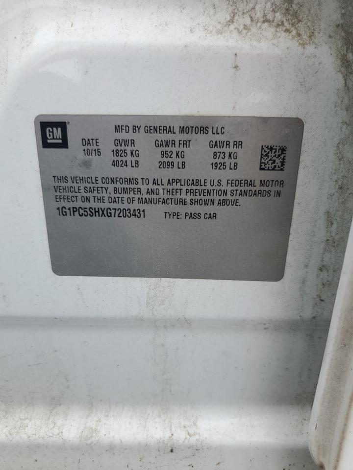 2016 CHEVROLET CRUZE - 1G1PC5SHXG7203431, колір - Білий, 1.8, Бензин, із США