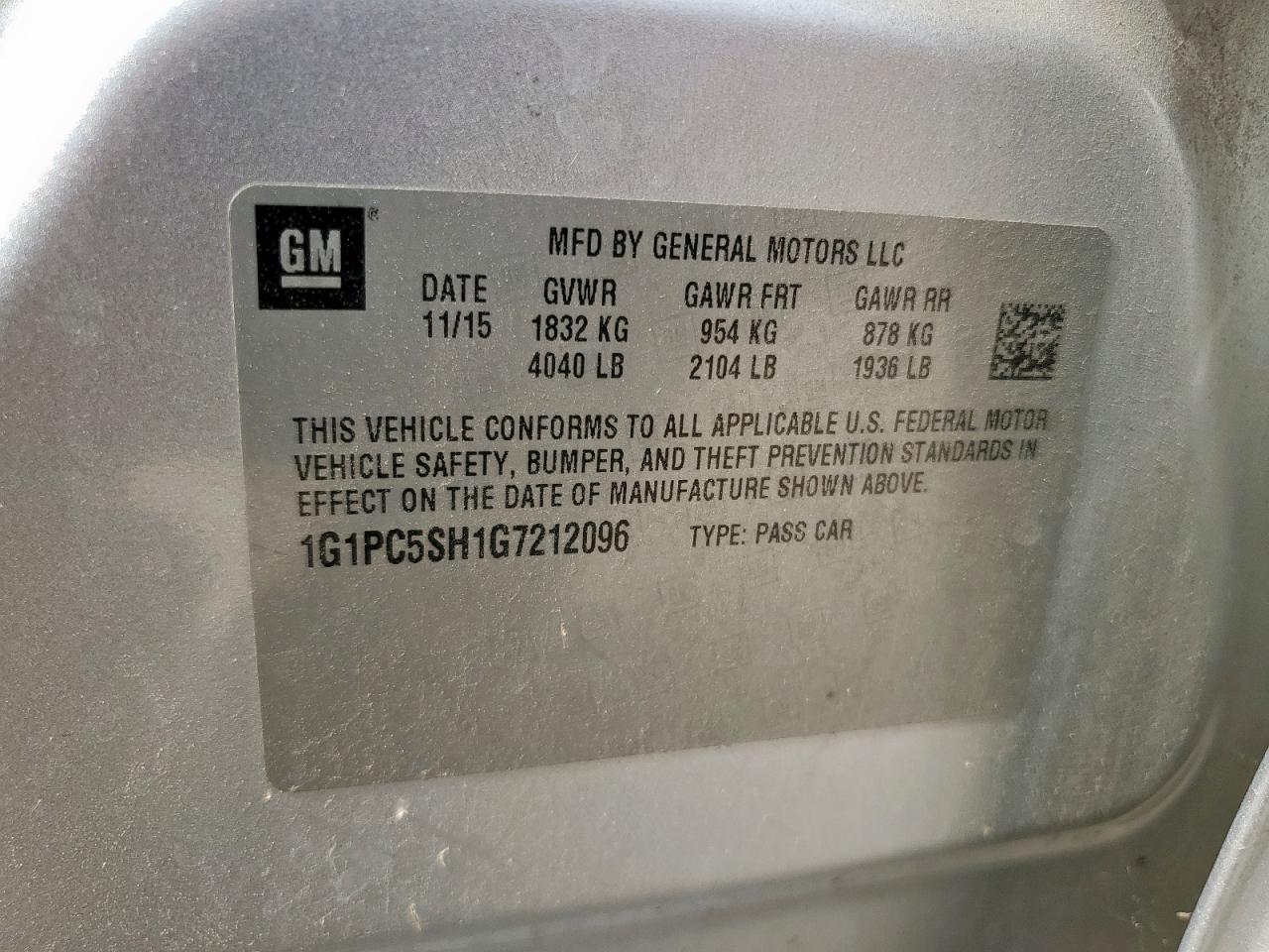Колір СрібнийЦиліндри 4VIN 1G1PC5SH1G7212096Стан НевідомоУшкодження НезначніДата аукціона 2025-10-09