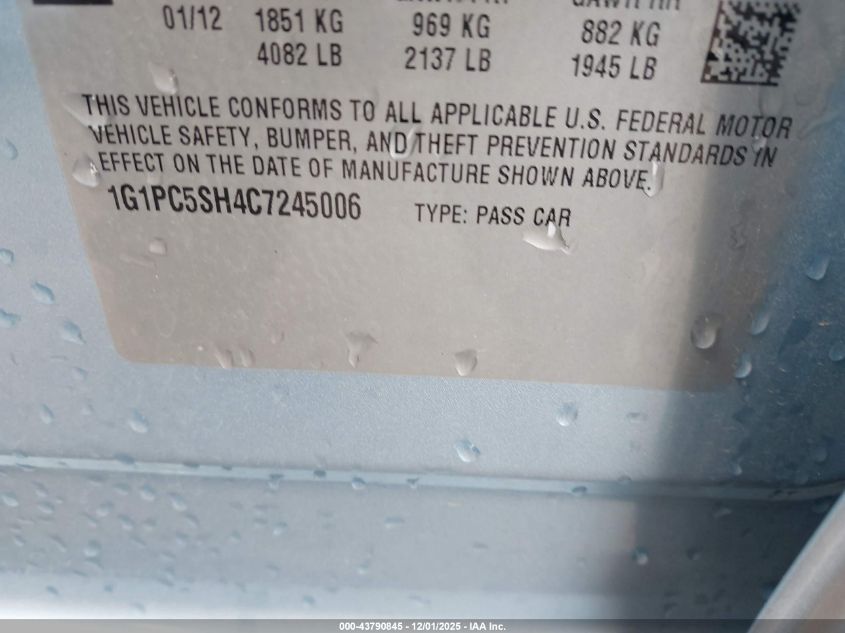 Колір СинійЦиліндри 4Привід Передній привідVIN 1G1PC5SH4C7245006Стан Заводиться та їде (перевірено)Ушкодження Передня або задня