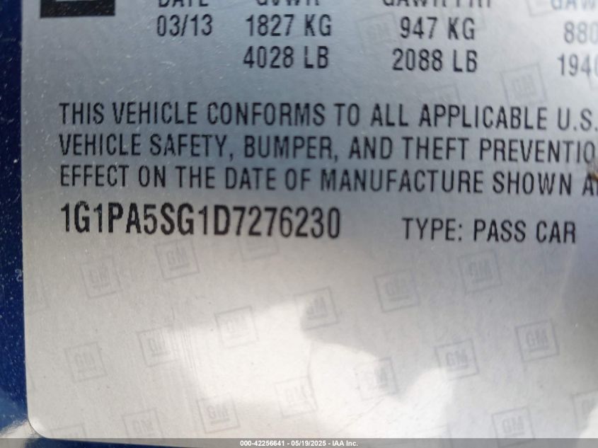 2013 CHEVROLET CRUZE - 1G1PA5SG1D7276230, колір - Синій, 1.8, Бензин, Передній привід із США
