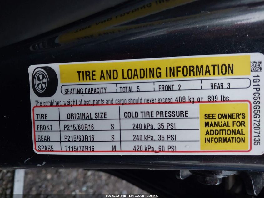 Колір ЧорнийЦиліндри 4Привід Передній привідVIN 1G1PC5SG5G7207135Стан Заводиться та їде (перевірено)Ушкодження Задня