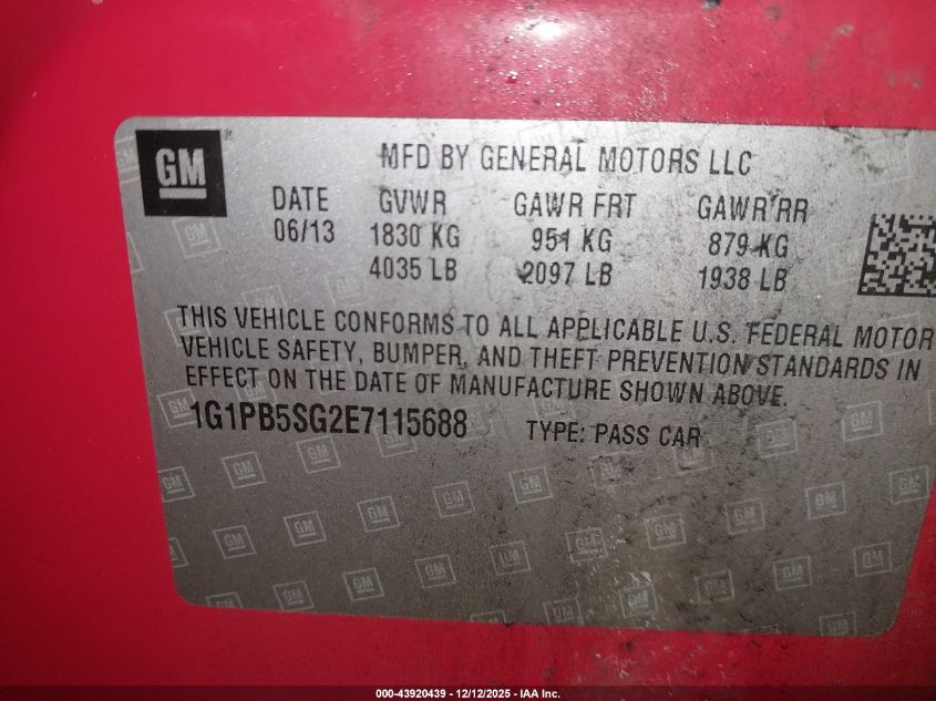 2014 CHEVROLET CRUZE - 1G1PB5SG2E7115688, колір - Червоний, 1.8, Бензин, Передній привід із США