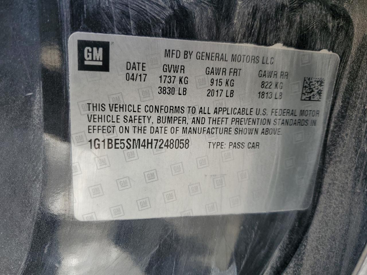 Колір СірийЦиліндри 4VIN 1G1BE5SM4H7248058Стан Заводиться та їде (перевірено)Ушкодження Передня або задня