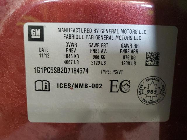 2013 CHEVROLET CRUZE - 1G1PC5SB2D7184574, колір - Червоний, 1.4, Бензин, із США