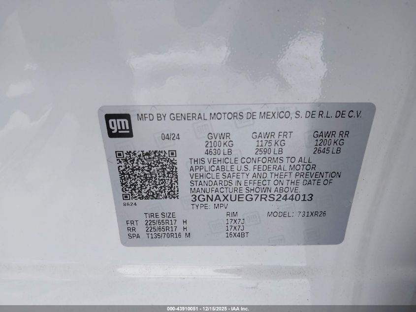2024 CHEVROLET EQUINOX - 3GNAXUEG7RS244013, колір - Білий, 1.5, Бензин, Повний привід із США