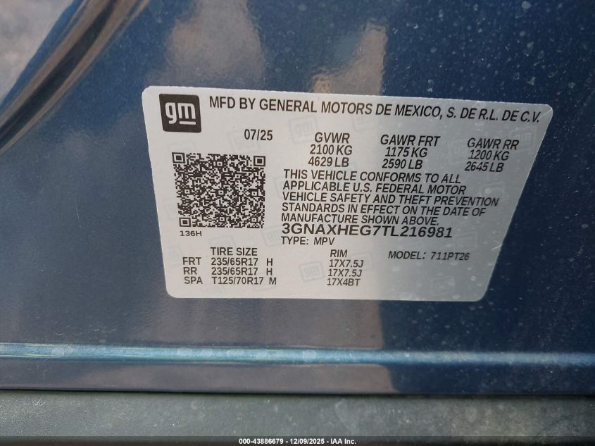 2026 CHEVROLET EQUINOX - 3GNAXHEG7TL216981, колір - Синій, 1.5, Бензин, Передній привід із США