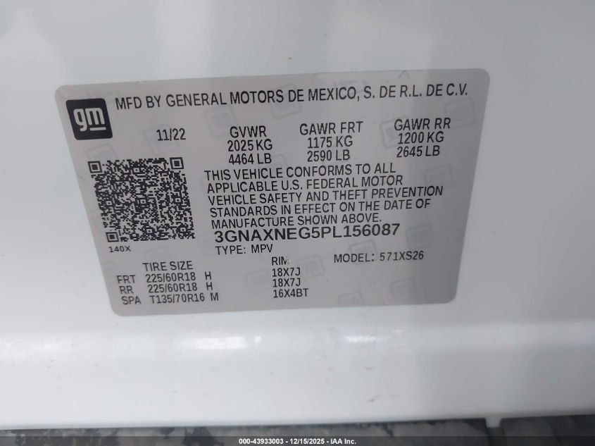 2023 CHEVROLET EQUINOX - 3GNAXNEG5PL156087, колір - Білий, 1.5, Бензин, Передній привід із США