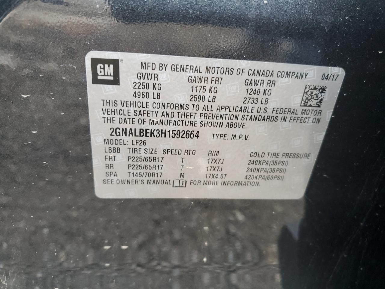 Колір СірийЦиліндри 4VIN 2GNALBEK3H1592664Стан ЗаводитьсяУшкодження По всьому авто