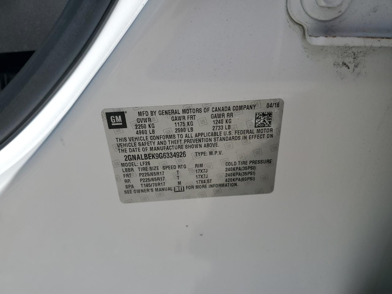 Колір БілийЦиліндри 4VIN 2GNALBEK9G6334926Стан НевідомоУшкодження НезначніДата аукціона 2025-10-08