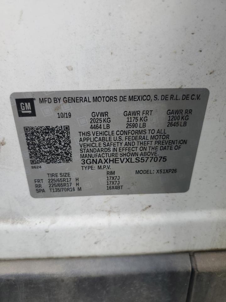 2020 CHEVROLET EQUINOX - 3GNAXHEVXLS577075, колір - Білий, 1.5, Бензин, із США