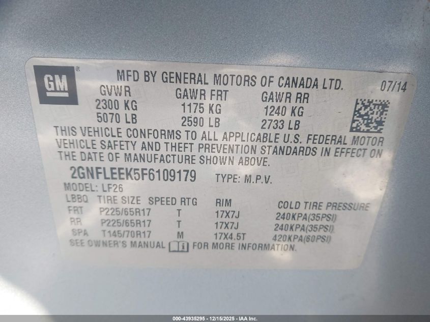 2015 CHEVROLET EQUINOX LT