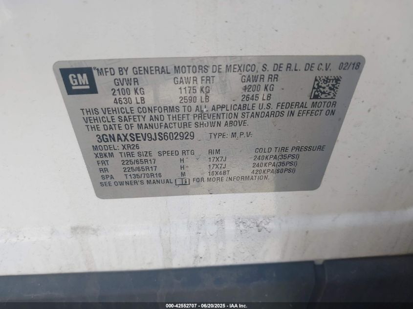 2018 CHEVROLET EQUINOX - 3GNAXSEV9JS602929, колір - Білий, 1.5, Бензин, Повний привід із США