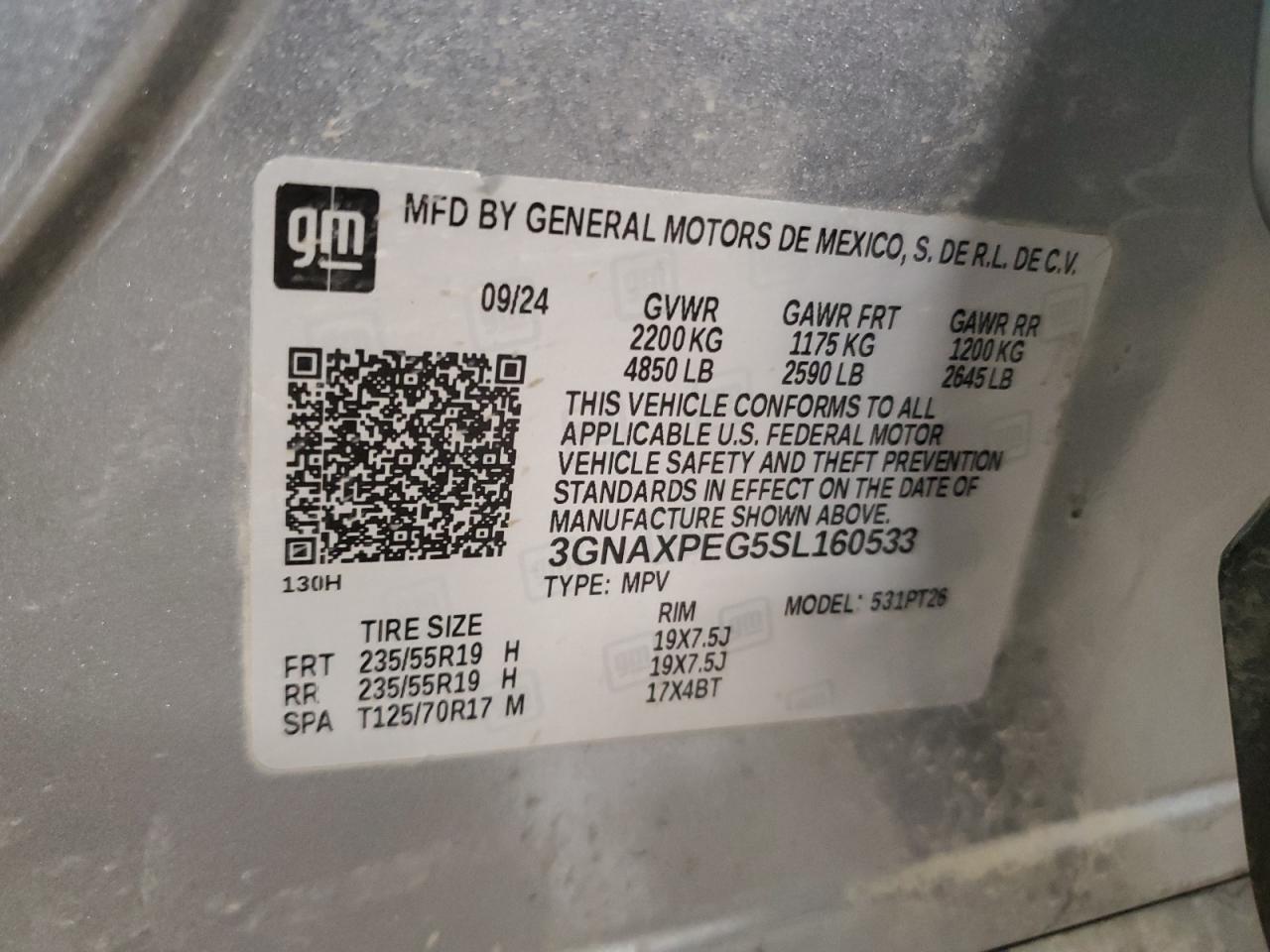 2025 CHEVROLET EQUINOX - 3GNAXPEG5SL160533, колір - Сірий, 1.5, Бензин, Повний привід із США
