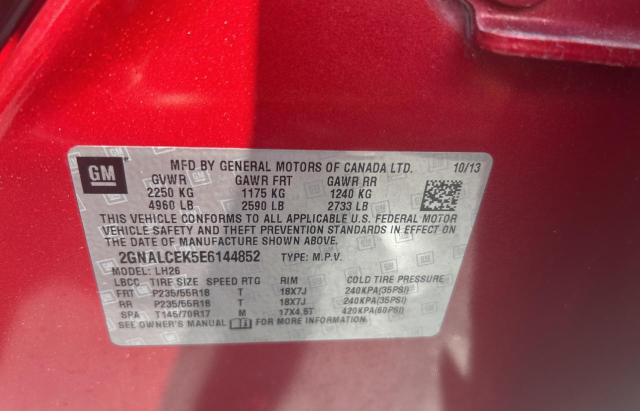 2014 CHEVROLET EQUINOX - 2GNALCEK5E6144852, колір - Червоний, 2.4, Бензин, із США