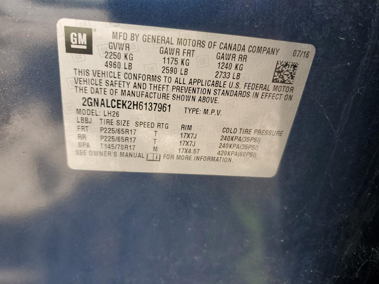 2017 CHEVROLET EQUINOX - 2GNALCEK2H6137961, колір - Синій, 2.4, Бензин, із США