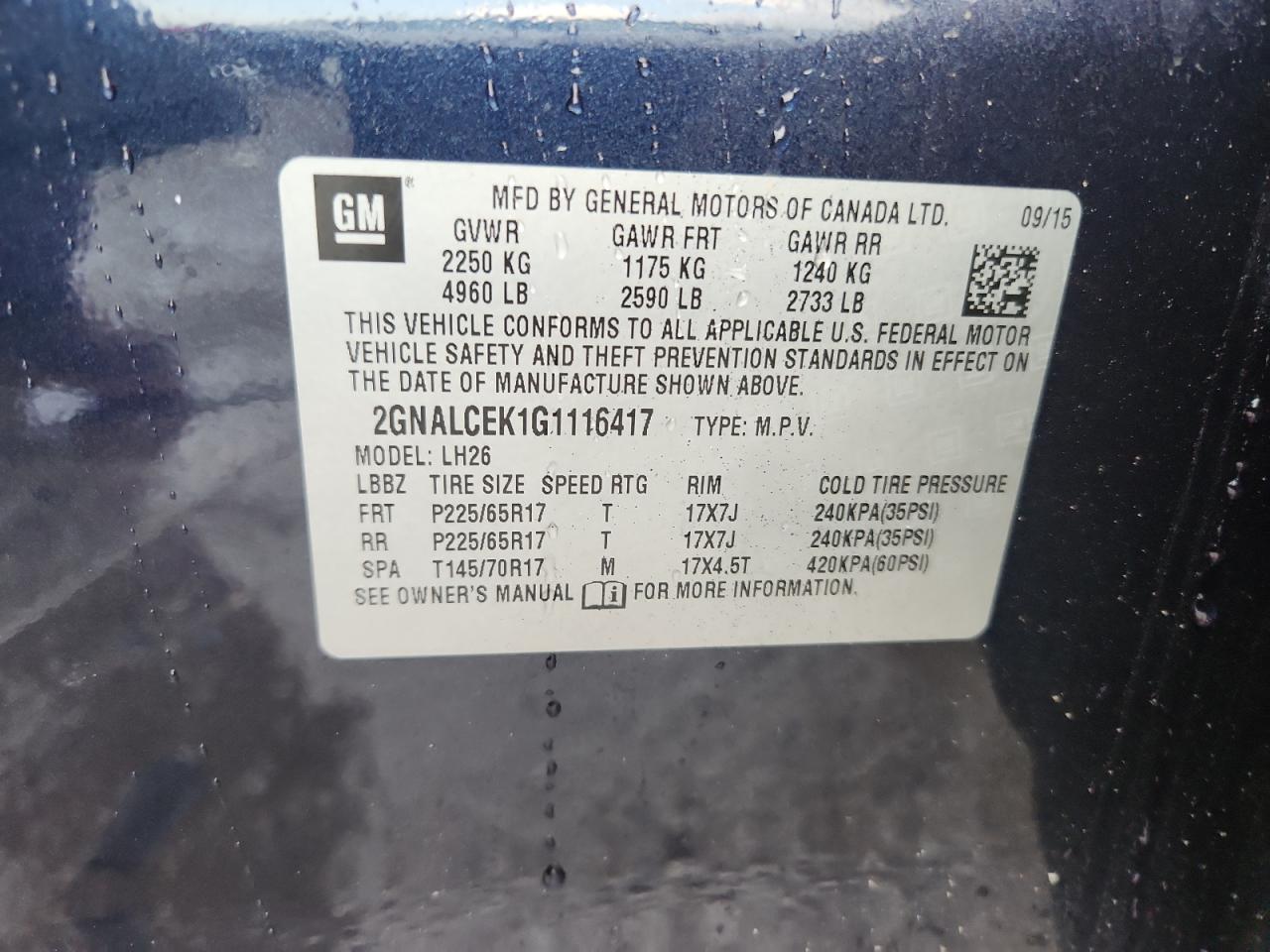 2016 CHEVROLET EQUINOX - 2GNALCEK1G1116417, колір - Синій, 2.4, Бензин, із США