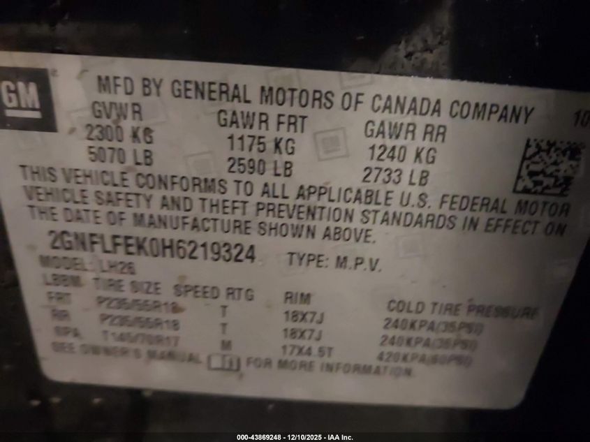 Колір ЧорнийЦиліндри 4Привід Повний привідVIN 2GNFLFEK0H6219324Стан Заводиться та їде (перевірено)Ушкодження Передня або задня