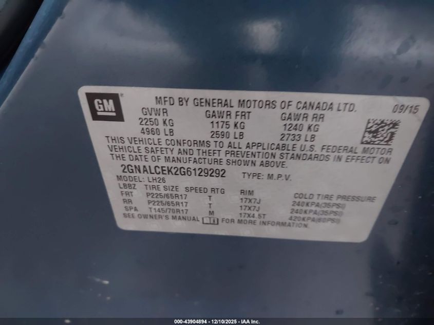 2016 CHEVROLET EQUINOX - 2GNALCEK2G6129292, колір - Синій, 2.4, Бензин, Передній привід із США