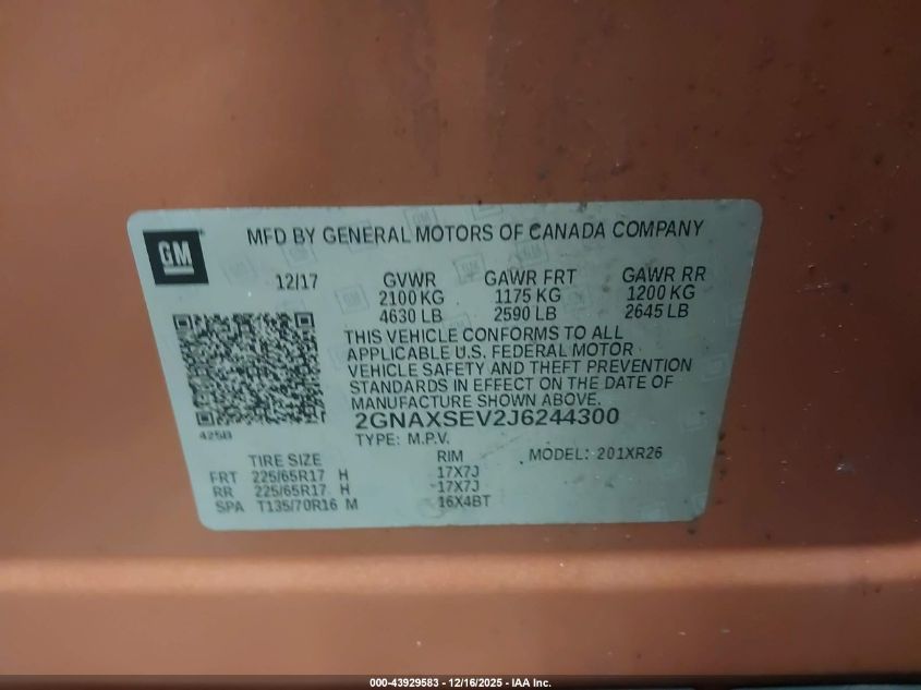2018 CHEVROLET EQUINOX - 2GNAXSEV2J6244300, колір - Апельсиновий, 1.5, Бензин, Повний привід із США
