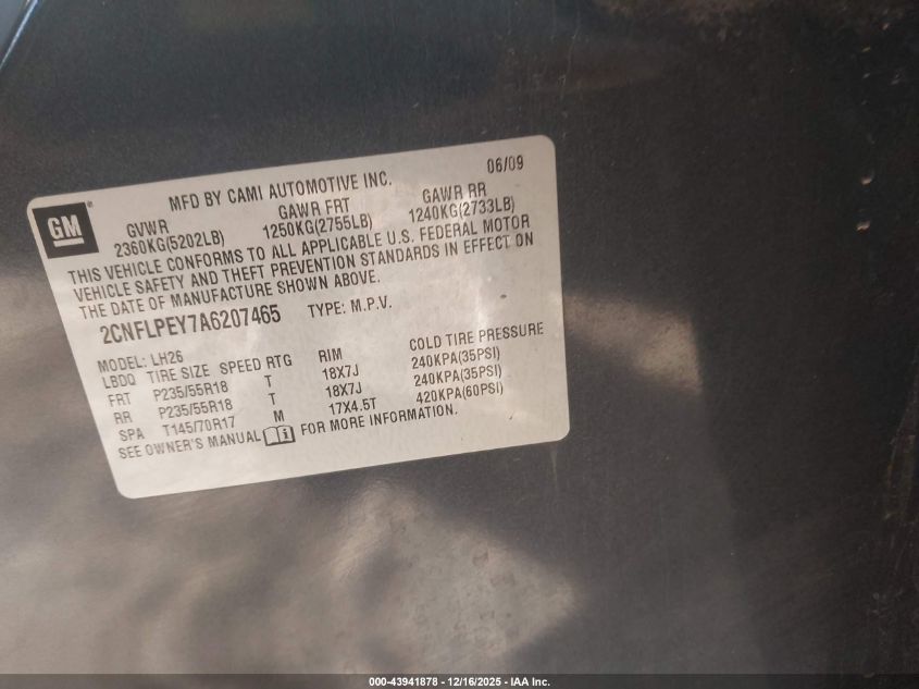 Колір СірийЦиліндри 6Привід Передній привідVIN 2CNFLPEY7A6207465Стан СтаціонарноУшкодження Передня або задня
