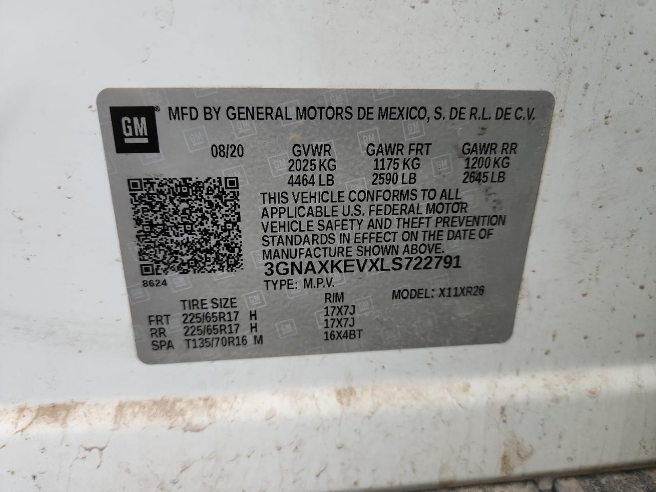 Колір БілийЦиліндри 4VIN 3GNAXKEVXLS722791Стан Заводиться та їде (перевірено)Ушкодження Передня або задня