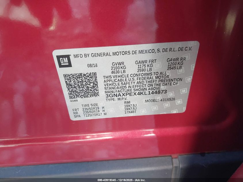 2019 CHEVROLET EQUINOX - 3GNAXPEX4KL144873, колір - Червоний, 2.0, Бензин, Передній привід із США