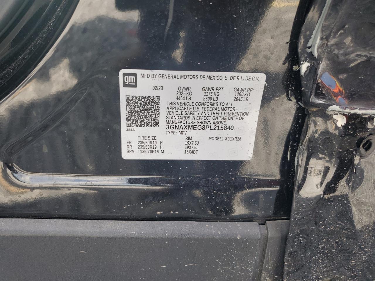 2023 CHEVROLET EQUINOX - 3GNAXMEG8PL215840, колір - Чорний, 1.5, Бензин, із США