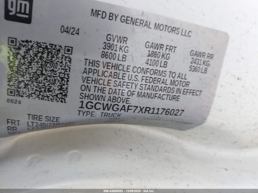 2024 CHEVROLET EXPRESS - 1GCWGAF7XR1176027, колір - Білий, 6.6, Бензин, Задній привід із США