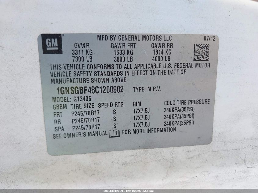 2012 CHEVROLET EXPRESS G3500