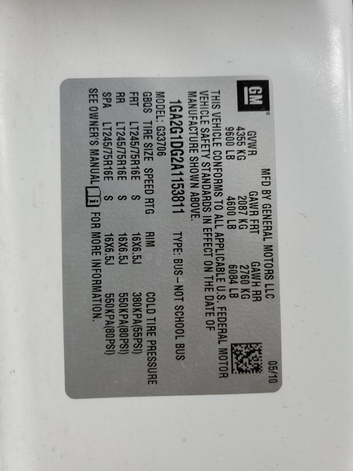 2010 CHEVROLET EXPRESS - 1GA2G1DG2A1153811, колір - Білий, 6.0, Бензин, Задній привід із США