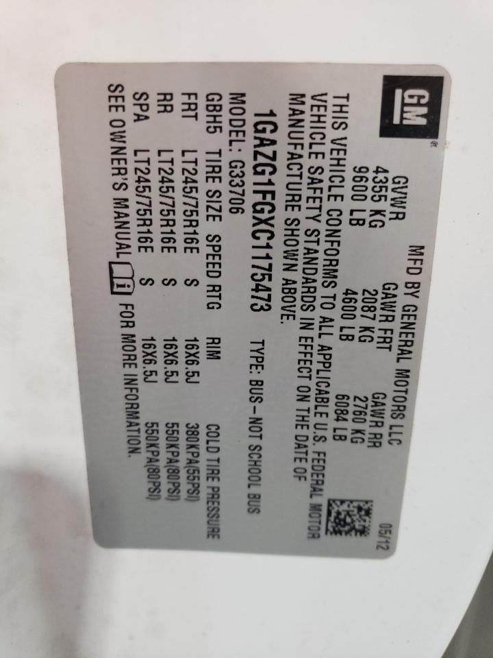 2012 CHEVROLET EXPRESS - 1GAZG1FGXC1175473, колір - Білий, 6.0, Бензин, Задній привід із США