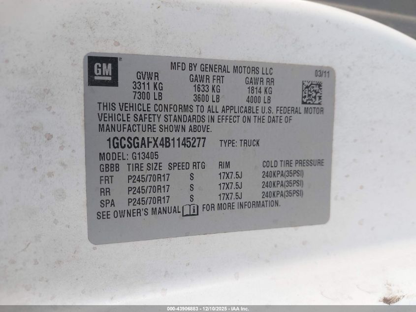 Колір БілийЦиліндри 6Привід Задній привідVIN 1GCSGAFX4B1145277Стан СтаціонарноУшкодження Задня права