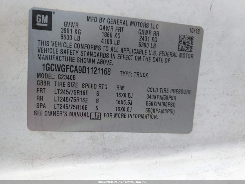2013 CHEVROLET EXPRESS - 1GCWGFCA9D1121168, колір - , 4.8, Бензин, Задній привід із США