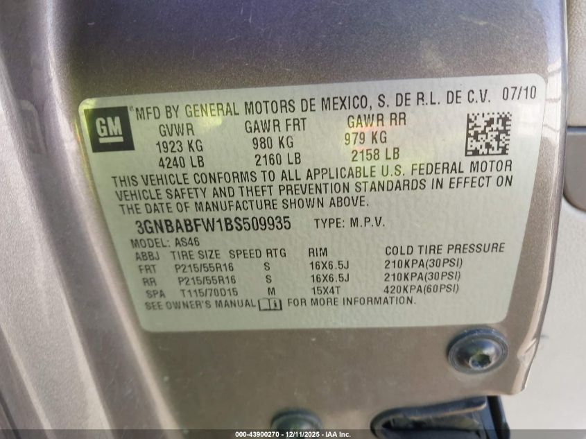 Колір БежевийЦиліндри 4Привід Передній привідVIN 3GNBABFW1BS509935Стан Заводиться та їде (перевірено)Ушкодження Незначні