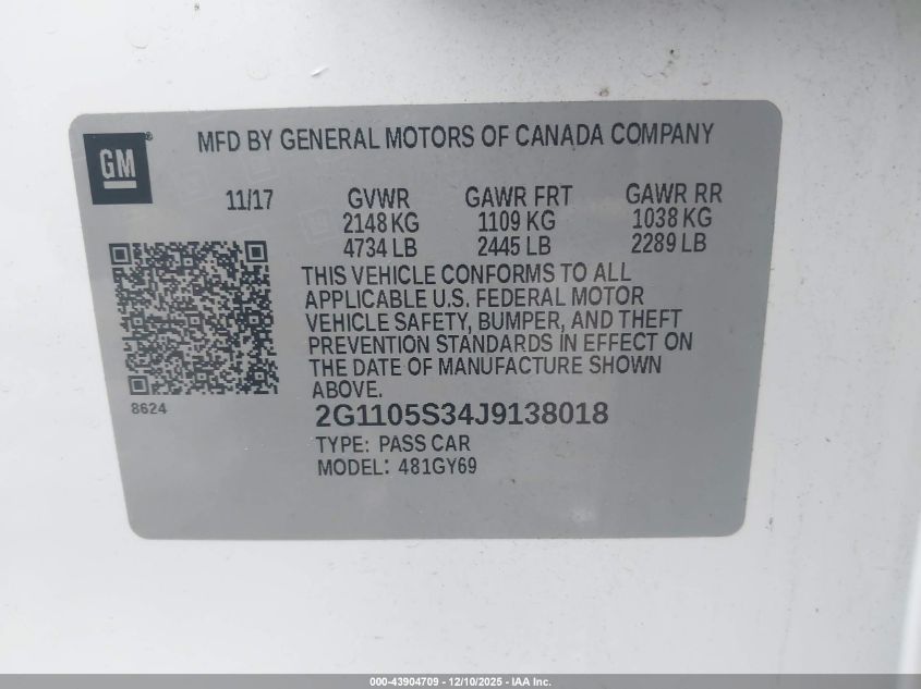 2018 CHEVROLET IMPALA LT
