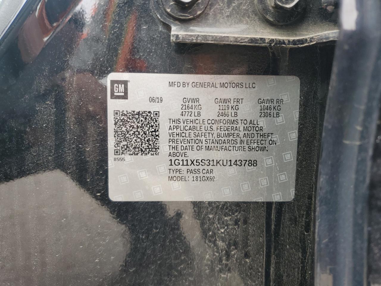 2019 CHEVROLET IMPALA - 1G11X5S31KU143788, колір - Чорний, 3.6, Бензин, із США