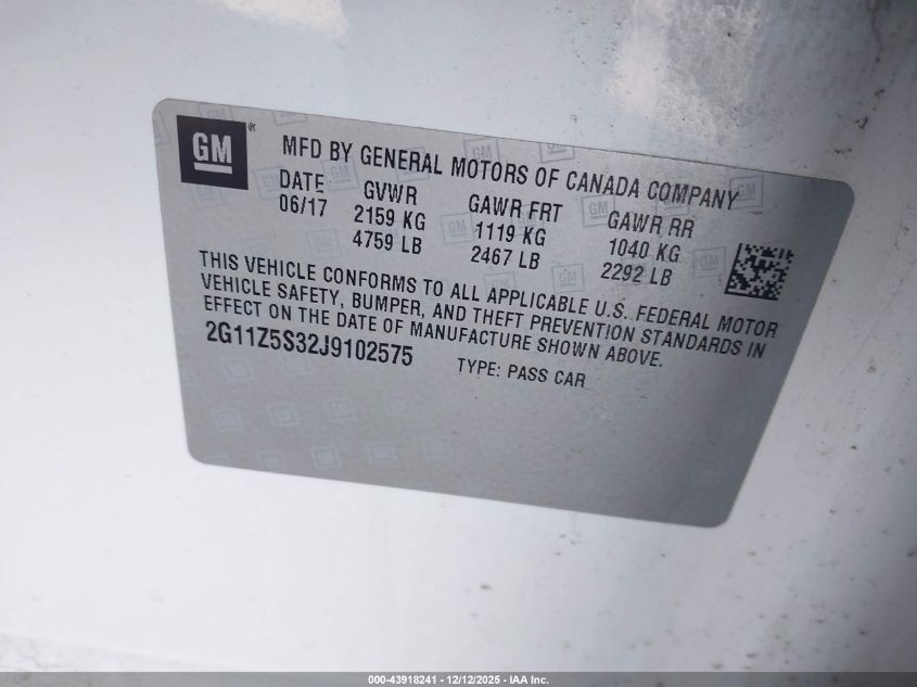 Колір БілийЦиліндри 6Привід Передній привідVIN 2G11Z5S32J9102575Стан СтаціонарноУшкодження По всьому авто