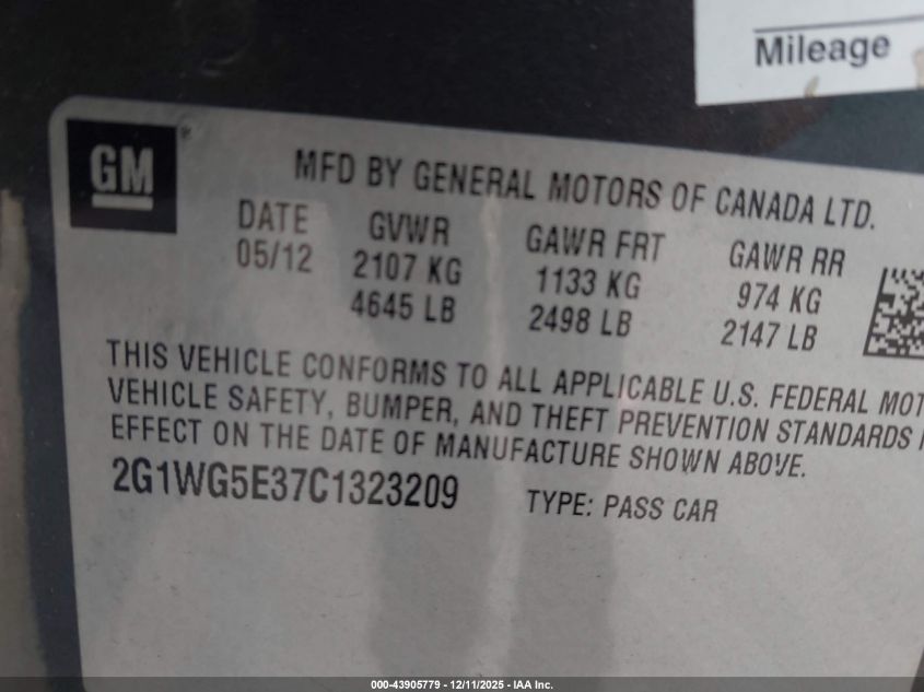 Колір ЧорнийЦиліндри 6Привід Передній привідVIN 2G1WG5E37C1323209Стан СтаціонарноУшкодження Звичайний знос