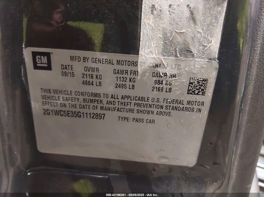 2016 CHEVROLET IMPALA - 2G1WC5E35G1112897, колір - Чорний, 3.6, Бензин, Передній привід із США