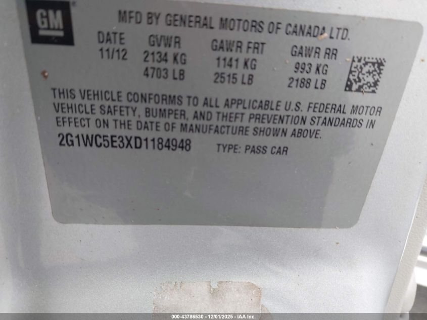 Колір СрібнийЦиліндри 6Привід Передній привідVIN 2G1WC5E3XD1184948Стан СтаціонарноУшкодження Механічні пошкодження