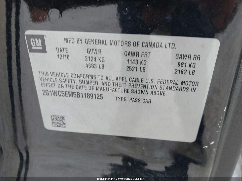 2011 CHEVROLET IMPALA - 2G1WC5EM5B1189125, колір - Чорний, 3.9, Бензин, Передній привід із США