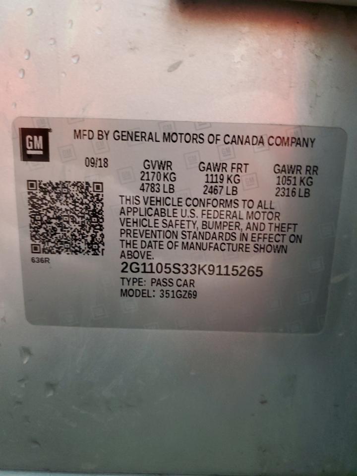 2019 CHEVROLET IMPALA - 2G1105S33K9115265, колір - Срібний, 3.6, Бензин, із США